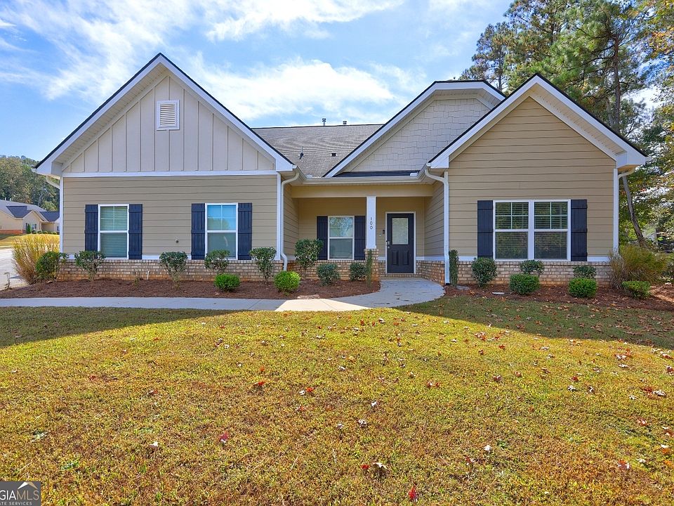 Beautiful Corner-Lot Ranch with Designer Upgrades and Smart Home Features: This stunning 5-bedroom, 4-bathroom ranch home offers a perfect blend of comfort, elegance, and functionality. Situated on a desirable corner property, it welcomes you with an open-concept layout ideal for both everyday living and entertaining. The spacious family room features a cozy wood-burning fireplace and flows seamlessly into the formal dining room accented by a coffered ceiling. The gourmet kitchen is a chef's dream-complete with modern lighting, an oversized island, abundant cabinetry, stainless steel appliances including a cooktop with range hood, double ovens, and a refrigerator. The main level hosts the primary suite with a luxurious private bath, along with two secondary bedrooms and two additional full bathrooms. Upstairs, a versatile bonus level provides a flex space, a bedroom, and a full bathroom-perfect for guests or a home office. Enjoy year-round comfort in the inviting sunroom with its own fireplace, or take advantage of the convenience of a laundry room equipped with washer and dryer. The home also includes a side-entry 2-car garage, smart home technology, and an alarm system for peace of mind. Located in the sought-after Union Grove school district, this home is just minutes from McDonough Square, shopping, dining, and entertainment. Also available for lease or lease purchase!
