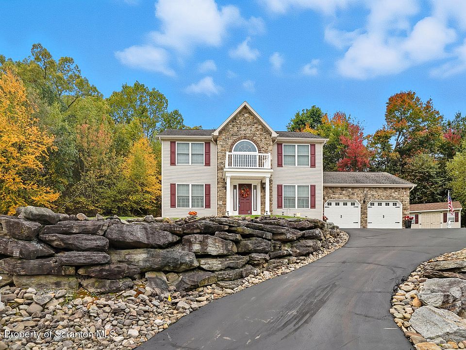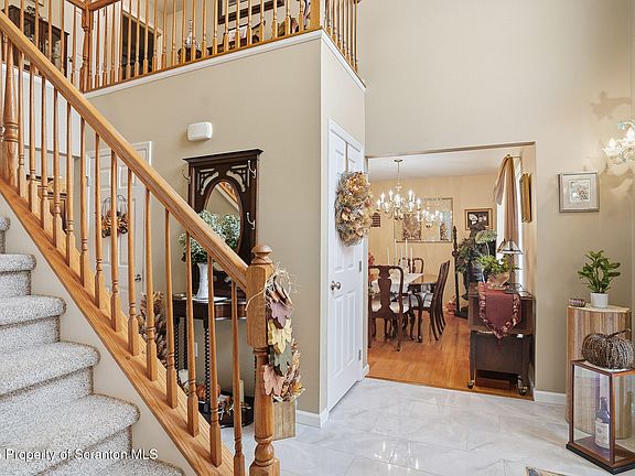 Welcome home! This lovingly built Colonial home (2009) is in the Greenwood Estates section of Moosic, a family friendly neighborhood, close to all amenities. Blending charm and elegance, this home sits on nearly a half acre lot and offers both sophistication and comfort. Enjoy the formal living and dining rooms, perfect for special occasions, along with a spacious family room that connects seamlessly to the modern kitchen - ideal for entertaining and everyday living. Step out onto the private rear patio right off the kitchen for effortless summer cookouts and quiet relaxation.The home features hardwood floors throughout, 3 nicely sized bedrooms, and 2.5 baths. The primary suite boasts a super-sized walk-in closet and a private en suite bath. For added convenience the laundry room is located on the second floor. While the lower level is currently unfinished, it offers ample space that can easily be transformed into a playroom, home gym, or recreation area. Additional highlights include central air, and natural gas heat adding to the charm, comfort, and functionality this pristine home.