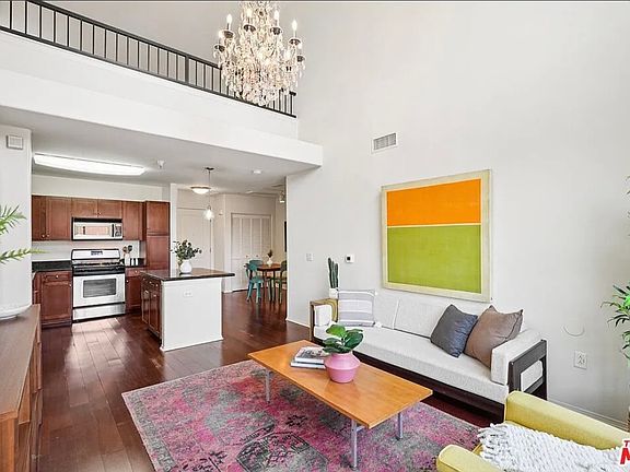 This stunning top floor condo features 2 bedrooms, 2 bathrooms, loft w/ fireplace, 17 ft ceilings and a courtyard facing balcony. Additional features include wood floors, granite counters, in-unit laundry and 2 parking spaces. The Savoy offers luxurious amenities including private courtyards, pool, spa, fitness center, business center, screening room, library, gated subterranean parking, 24 hour attended lobby & rooftop deck with spectacular views of Downtown L.A. Freshly painted with new carpet. The unit is currently staged. Must see!