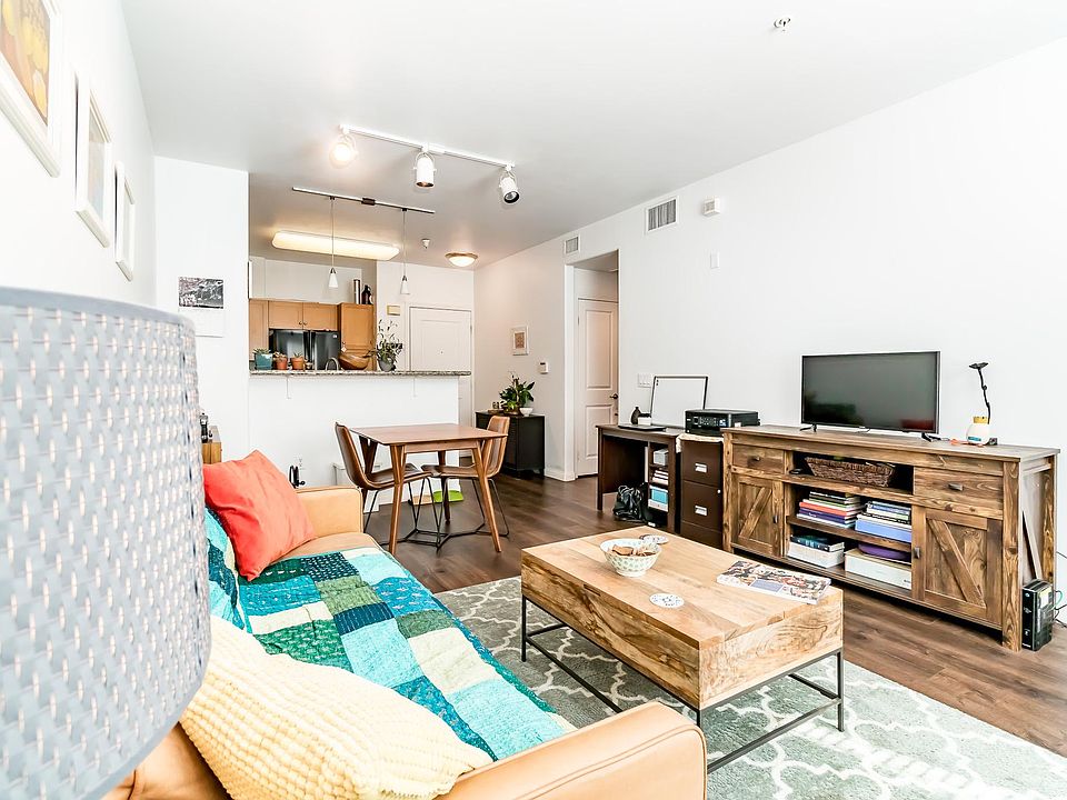 1 Parking spot included with this unit (the other parking spot noted in the listing is currently being rented out) Wide wood-plank dark wood like luxury vinyl Large sized kitchen with granite countertop 3-door french door refrigerator Lots of cabinet/storage space Private patio with direct access from living room Medium-sized bedroom Large detached full bathroom Washer and dryer in-unit Recessed lighting Smart home connected: Nest thermostat and Nest Hello doorbell Owner pays garbage. Tenant responsible for electricity, water, wifi, cable, etc.