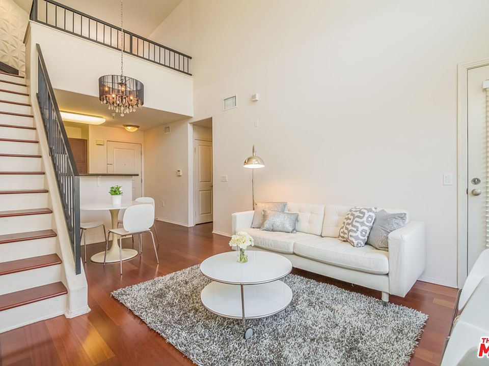 Bright east-facing top floor residence features 1 bedroom plus a cozy loft w/ fireplace, 17" tall ceiling height, balcony w/ storage closet, wood floors in open living, dining, kitchen and stairs, modern kitchen appliances and cabinets, granite counters, large full bath w/ side by side washer & dryer and designer carpet tiles and wall panels around fireplace. Savoy condos offers luxury amenities including pool & spa courtyard, fitness center, business & conference rooms, sports café, screening room, library, gated subterranean parking, 24 hour attended lobby & rooftop deck with spectacular skyline views. Experience a unique dining, entertainment and shopping experience in burgeoning Arts District and Little Tokyo, all within easy access to other diverse neighborhoods in DTLA.