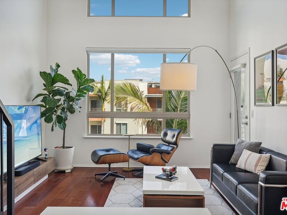An ultra-cool, east-facing top-floor condo offers the most sought-after 1-bedroom + loft layout, showcasing tranquil pool courtyard views and soaring 17' ceilings. The vibe is elevated with sleek wood floors, recessed lighting throughout, and a private balcony with extra storage. The modern kitchen pops with brand-new cabinets, stylish countertops, a chic farm sink and fixture, and stainless steel appliances. The bedroom is cozy with newer carpet, a walk-in closet, and the bath is decked out with tiled shower walls & flooring, a contemporary vanity plus the convenience of a side-by-side laundry closet. A versatile 2nd-floor loft space, perfect for a home office, gym, or cool guest spot adds to the appeal. SAVOY community brings resort-style living right to your doorstep with lush landscaped courtyards, a pool, spa, fitness center, business center, a Sports Cafe clubhouse and a rooftop deck with epic skyline views. Take advantage of 24-hour lobby service and convenient guest parking, all with low HOA dues! Right in the heart of historic Little Tokyo and the buzzing Arts District, SAVOY places you in the center of DTLA's ever-evolving and vibrant community scene.