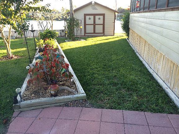 *** PRICE REDUCED BY $5,000! *** This Mobile home features a spacious open floor plan, screened in porch, and a large shed in the backyard as well as huge windows with a great view of the property and resaca. It also has windstorm certified roof and hurricane shutters. The home includes a large attached utility room, lovely kitchen, and custom wood cabinets. Also this home sits on two lots, has a detached carport, recently installed sea wall, inclosed water heater and softener in the backyard with an extra water pump for usage of the water from the resaca, and is fenced in around the entire property. Home was completely renovated in 2010 and is in excellent condition. The yard is very nice and landscaped with stones and drought tolerant native plants.