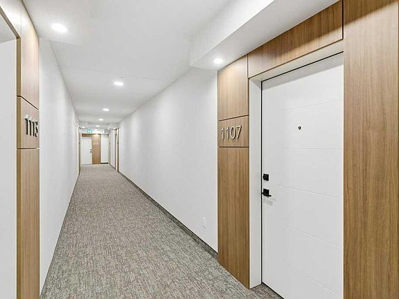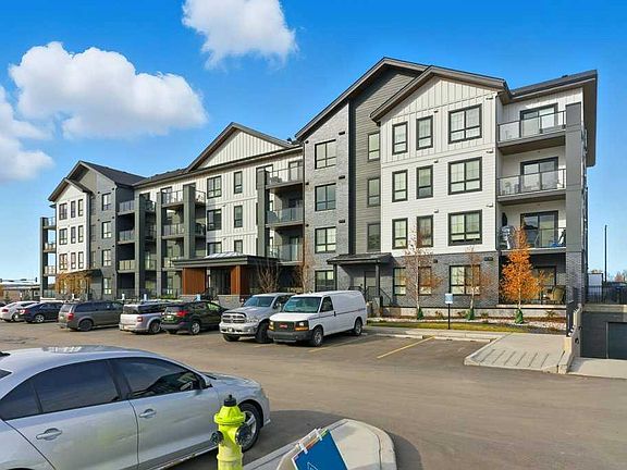 Welcome to #1107, 100 Banister Dr at the beautiful Lawrie Park Condos. This brand new Ava model condo offers the perfect blend of style, functionality, and location. Featuring 2 bedrooms, 2 bathrooms, and over 840 sq ft of thoughtfully designed living space, this home is ideal for anyone seeking comfort, convenience, and modern living. Only 15 minutes south of Calgary in one of Okotoks newest communities, this location has it all. Step inside to discover a bright open-concept layout with luxury vinyl plank throughout the unit, beautiful shaker-style cabinets, extra pull-out drawers in the kitchen, quartz counter tops and a seamless flow between the living, dining, and kitchen areas. The primary suite includes a spacious walk-in shower and a custom linen closet for added storage and organization. What truly sets this unit apart is its massive walkout patio — the largest in the entire complex (34 feet)! Other units in the complex have walkouts as well, but none as big and spacious as this one! Enjoy direct street access, making it easy for guests or pet owners to come and go. A phantom screen door and patio gate add extra comfort and convenience. This pet-friendly building also boasts low condo fees, offering exceptional value and peace of mind. Additional features include underground parking, a separate storage locker, and ample street parking right out front. The location can’t be beat — just steps from basketball courts, community garden plots, playground, bike park, a nearby shopping centre, golf courses, enclosed dog park, and a scenic pond with walking paths. Whether you’re looking to enjoy nature, stay active, or explore local amenities, everything you need is right at your doorstep. Move-in ready and loaded with upgrades, this beautiful condo combines modern finishes with unbeatable functionality. Don’t miss your opportunity to call this brand-new home your own — book your showing today!