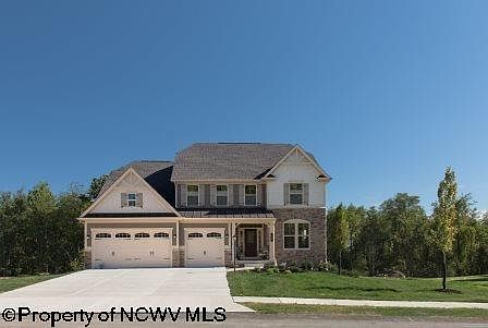 Olsen floorplan. Walkout basement with plumbing for bath. Morning room extension off kitchen, stainless steel appliances with gas cooktop & wall ovens. Granite countertops & hardwood floors. Stone to ceiling fireplace in familyroom. 4' extension to study. Separate tiled tub/shower in owners bath. Upgraded trim. Security system. Community features sidewalks, street lights, proposed neighborhood pool & access to Cheat Lake walking trails! This home is sold & under construction. Model Photos.