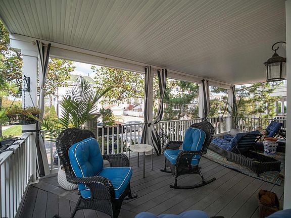 Welcome to this exquisite St. Leonard's Tract beach block estate, graced by an enchanting tree-lined street. This remarkable property sits on an expansive 50' x 125' lot, offering an abundance of opportunities. With four floors of living space encompassing nine bedrooms, four and a half bathrooms, and even room for a stunning pool, the potential is limitless. As you step inside, the allure of this home unfolds. Gorgeous hardwood floors, crown molding, and high ceilings enhance its timeless beauty. The open layout welcomes an abundance of natural light into the sun-filled living room, adorned with built-ins and a marble fireplace. A generously sized formal dining room, a convenient home office, and a spacious eat-in kitchen complete the main floor. The kitchen showcases stainless steel appliances, while the adjacent sunny breakfast room leads to a delightful back deck. On the second floor, you'll find two sizable bedrooms that share a private deck with breathtaking ocean views. Additionally, a luxurious principal bedroom awaits, boasting a stunning bathroom, walk-in closet, and a private deck to savor tranquil moments. The third floor accommodates three more bedrooms and a shared full bathroom, offering ample space for family and guests. The lower level of this home is a pleasant surprise, once utilized as a doctor's office. It encompasses four rooms, a spacious living area, a full bathroom, a laundry room, and abundant storage space. Complete with two outdoor entrances, this level adds versatility to the property. The exterior of the home is equally captivating, featuring a vast fenced yard ideal for a pool, an outdoor shower for refreshing after beach outings, and a detached 1.5 car garage with a bonus room above. The driveway easily accommodates up to four cars, ensuring ample parking for residents and guests. Nestled just steps away from the beach, boardwalk, and Ventnor pier, this magnificent residence is perfect as a summer retreat or a year-round haven. Embrace the idyllic lifestyle that awaits in this sensational home.