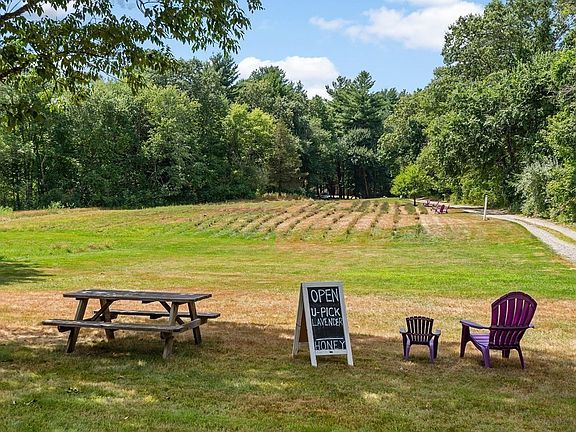 The Lavender Field in Sherborn! Experience a year-round vacation lifestyle with a lavender farm stand & direct access to trails. This spacious Colonial Farmhouse was completely renovated and expanded in 2000/06 with 5 BR/5BA & 5 fireplaces & overlooks a lavender field meadow and is thoughtfully set back from the road. First floor bedroom/bath, plus four second floor bedrooms including 2 primary suites. Flexible floor plan is great for entertaining and several home office options. Tavern style dining room has cozy fireplace and French doors to screened porch. Second floor reading room opens onto deck with hot tub. Large finished area in basement with lots of storage. Massive bonus room over garage is now used as an office, but could also be a wonderful studio area. Attached two-car garage with mudroom & additional detached barn/farm stand. 1st & 2nd flr laundry. Sidewalks to town and direct access to conservation out backyard. Sherborn offers a top school system and serene Farm Pond.