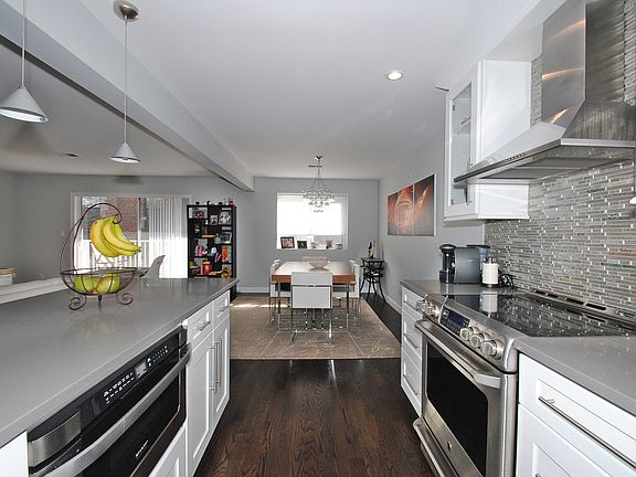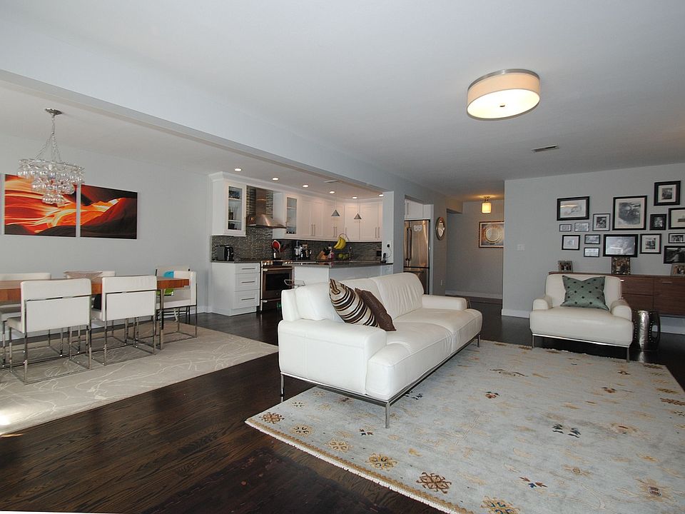 Oversized fully renovated Condo with open floor plan and new hardwood flooring throughout. Renovated in 2012. Kitchen includes custom cabinetry and top of the line stainless steel appliances. Designer bathrooms with top of the line finishing. Master Bedroom includes huge walk-in closet and a second oversized closet. Can easily convert to 3BR. LED Lighting. Central a/c. 2 Parking Spots including a private garage entrance. 2 Blocks from the train. Walk to town and parks. Large Terrace. Private Storage Room. Tons Of Closets throughout. Great Neck South Schools. Must See First Show! Open House By Appointment Only - Please call (516) 714-3205 or (347) 709-2692.