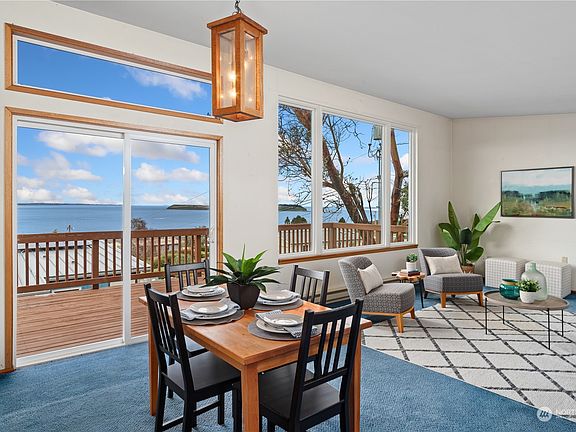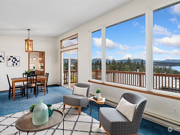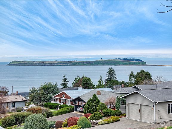 HUGE VIEWS! This darling Mid Century has unobstructable views - including full view of Protection Island from tip to tip, a view of the Straits & all the shipping traffic as well as the entrance of Discovery bay with snow-capped Olympic Mountains beyond. Not to mention the best sunsets on the Quimper Peninsula! Main floor is 1,100sqft a 2 bed/1bath with a huge views. Downstairs is a 600sqft 1 bed/1bath apartment with a private entrance & a single car garage. Enjoy the Cape George community amenities including, pickleball courts, clubhouse with pool, exercise room, kitchen & event space, marina & shared workshop. This home is a gem ready for the next owner to help it shine!