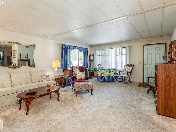 Major price improvement on this large, beautifully landscaped, open-concept 2 bed, 2 bath Marlette manufactured home in the desirable Seminole Estates Park. This home features a great room upon entrance, separate living room with pellet stove, a dining room with built-ins, a kitchen with extras and a utility room. The large primary suite has a vanity and deep soaking tub. This home has a newer roof! In the back yard you have ample covered patio space to enjoy the tranquility of the Beaverton Creek. Side-by-side covered parking makes this place a plus! Appliances stay. Motivated seller! Come turn this move-in fixer your home.