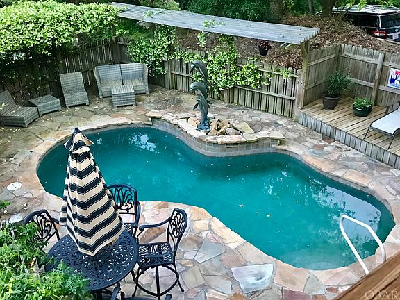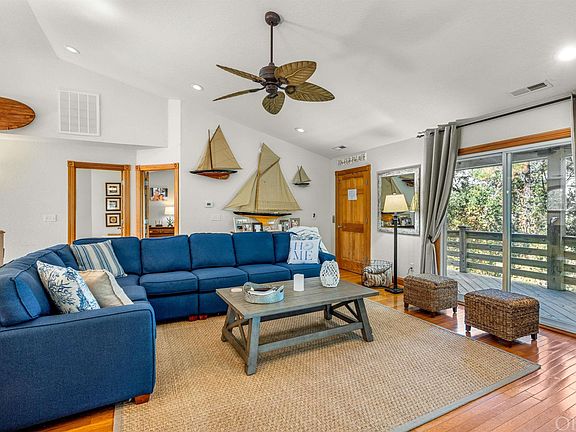 Unique private resort setting on a quiet street only steps away from Duck Village! You'll fall in love with the outdoor space. The house is conveniently equipped with an elevator that takes you to all three floors of the home. The ground level of the home offers a pool table, games and cards, a bedroom and a bathroom that may be accessed from the game room as well as the bedroom, plenty of storage and a wonderful attached garage. Up to the next level ...three bedrooms, three bathrooms, a half bath, laundry room, more storage and a sitting area to enjoy reading a good book or watching a movie after a sunny day at the beach. The top floor of the home boasts a large open concept living area, another half bath, even more storage, a primary bedroom with a large bathroom and dressing area. What's not to like? Schedule an appointment to see Tin Cup Palace today! FOUNDERS HAS DEEDED BEACH ACCESS!!!