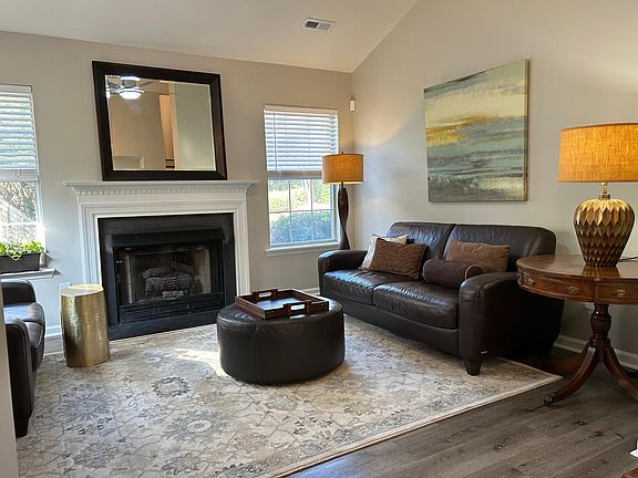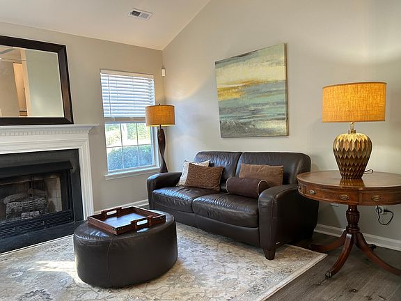 Newly renovated and fully furnished end unit 2 bed 2.5 bath townhome. Feels like a house with plenty of natural light and a cathedral ceiling. Open floor plan living room with gas log fireplace, formal dining area with bay windows, kitchen with large island, and den with breakfast nook and home office. Stainless steel kitchen appliances and granite countertop. Brand new HVAC system and washer/dryer. Laminate wood floor throughout. Private side yard and backyard. Enjoy the outdoors from the patio or covered porch. Beautifully landscaped. Neighborhood tennis courts, playgrounds, and a lake. One mile to Wegman's. Minutes to UNC-CH, Duke, RTP, and RDU International Airport.