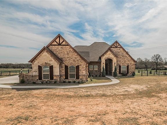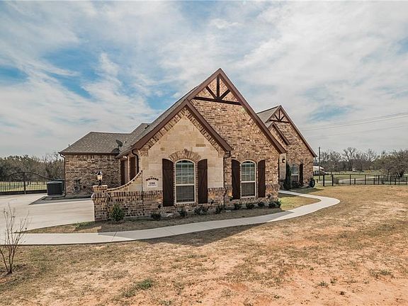 Stunning custom home in the established Spring Meadow Estates subdivision. This single story 4 Bedroom, 3 Bath, home has a lot to offer, from the beautiful entry way, to the hardwood floors, spacious kitchen with double ovens, family room with stone fireplace, 2 MASTER SUITES, flat screen wiring, french doors in study, cabinets in laundry room, 3 car garage, 1 acre lot, mud room and much more..... Extended covered patio with TV and outdoor fireplace for gatherings with family and friends. Not to mention real close to the schools and only 30 minutes from Fort Worth. No maintenance needed for septic!!