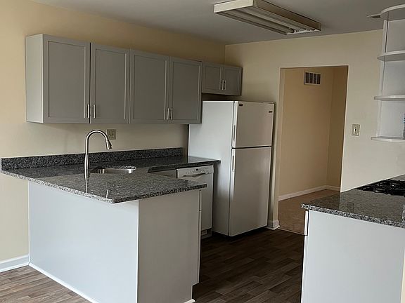 - Spacious kitchen with lots of cabinet space and eat-in-area. Microwave, dishwasher, refrigerator, garbage disposal, gas range with oven/broiler are provided.