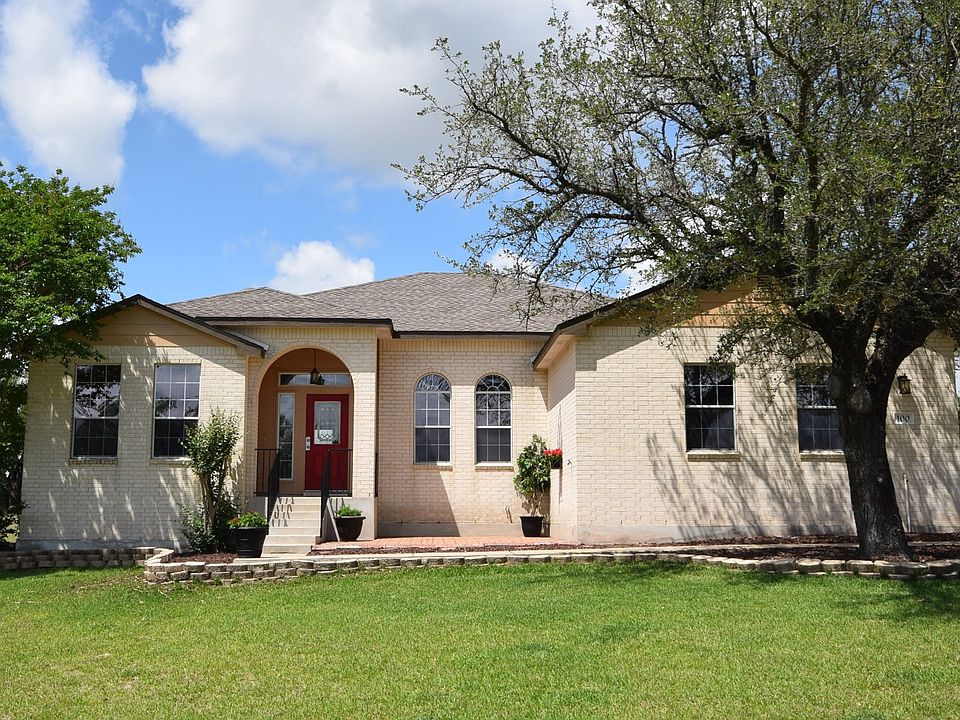 Beautiful home on 1.5-acre private cul-de-sac lot in The Ridge! Inviting glass entry door welcomes you to this split floor plan home. Through the archway to the left of the entry is the formal living, which features hardwood flooring and crown molding. A half wall and arched openings separate the living room from the formal dining, which also features hardwood floors and crown molding. At the rear of the home is the oversized family room, which boasts ceiling fan, wood floors, surround sound speakers, and fireplace with brick hearth. Family room is open to the kitchen, which includes breakfast bar, granite countertops, and corner pantry. Stainless steel appliances include brand new smoothtop stove, microwave, dishwasher, and refrigerator. Breakfast nook features tile floor, chandelier and door to back patio. Oversized master bedroom boasts ceiling fan, new carpet, walk-in closet, and barn doors leading to bathroom. Master bath has dual sinks, sconce lighting, garden tub, and separate shower. Three more bedrooms all feature new carpet and ceiling fans. An additional full bathroom includes tub/shower combo. Huge 16x32 wooden deck highlights the parklike private back yard, with plenty of shade trees and open space. Additional features include side-entry garage with opener, sprinklers, and alarm system. Located in The Ridge, an upscale exclusive lake view neighborhood near Dana Peak Park at Stillhouse Lake. Schools are Skipcha Elem, Union Grove Middle and Harker Heights High!