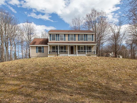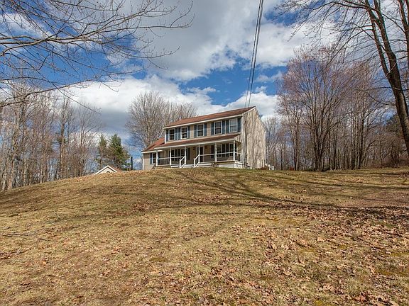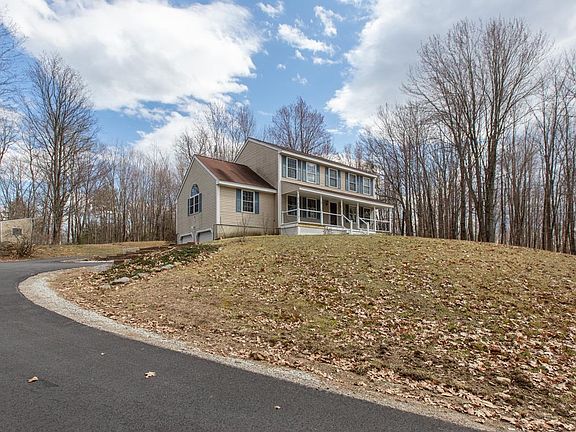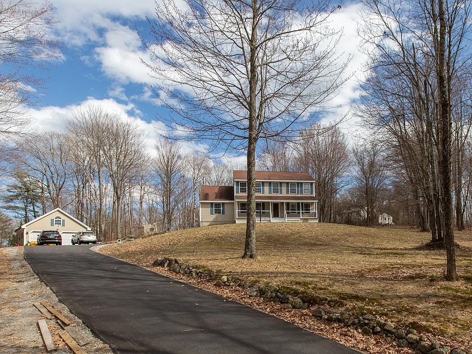 This 3 bedroom, 3 bath home is privately set back from the road high on the hill. The driveway is newly paved. There is a detached 2 car garage with storage above as well as a 2 car, auto open garage attached to the house. Inside, the kitchen is spacious with a new exhaust over the range/island. The large family room has a vaulted ceiling and a wood burning fireplace. The first floor also has a dining room and formal living room/office. Most of the house is hard wood flooring. There is a nice 3 season room off of the deck. (Brand new hot tub negotiable)