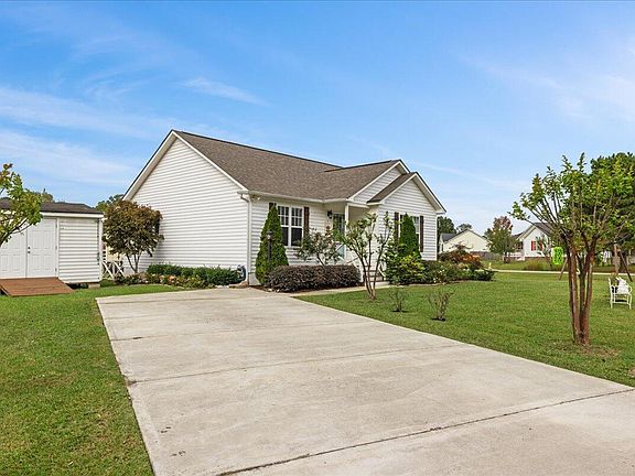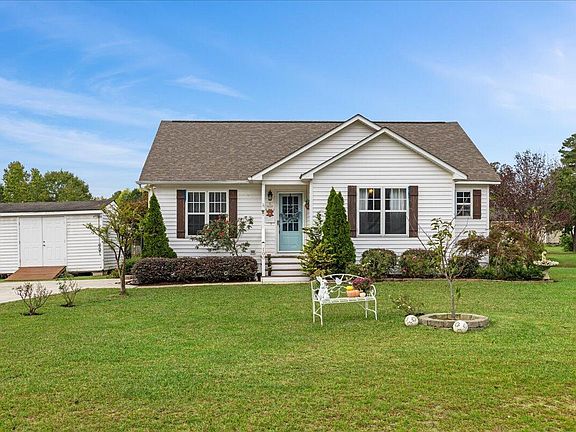 Charming 3-Bedroom Ranch on a Cul-de-Sac Corner Lot! This adorable 3-bedroom, 2-bath ranch home is perfectly situated on a spacious corner lot in a quiet cul-de-sac, offering both privacy and convenience. Step inside to find luxury vinyl plank flooring throughout the entire home—stylish, durable, and easy to maintain. Enjoy year-round outdoor living with a covered back patio—perfect for entertaining—plus an additional patio area complete with a cozy firepit. Gardening enthusiasts will fall in love with the beautifully designed landscaping that surrounds the home, offering vibrant curb appeal and peaceful outdoor space. A 16' x 12' storage building/workshop provides plenty of room for tools, hobbies, or additional storage. Public water and sewer, and a location that's incredibly convenient to Hwy 70 Bypass, I-95, I-40, and Raleigh make this home a rare find. Don't miss this move-in-ready gem with charm, function, and great outdoor living! SOLD AS IS