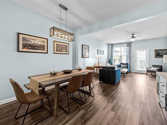 Lovely, well-maintained 2 BR, 2 1/2 BA townhome in great location. Main floor has open floor plan that leads to patio with attached storage. Half BA downstairs. New stainless fridge in 2020. Upstairs are 2 BRs, each w/ attached full bath. Owner's BR has vaulted ceiling. Entire interior repainted in 2020. Beautiful LVP flooring added 2020 & 2021, new carpet on stairs 2021. Ideally located between downtown Durham and RTP, convenient to Southpoint and the ATT. Quiet community w/walking trails along 2 lakes.