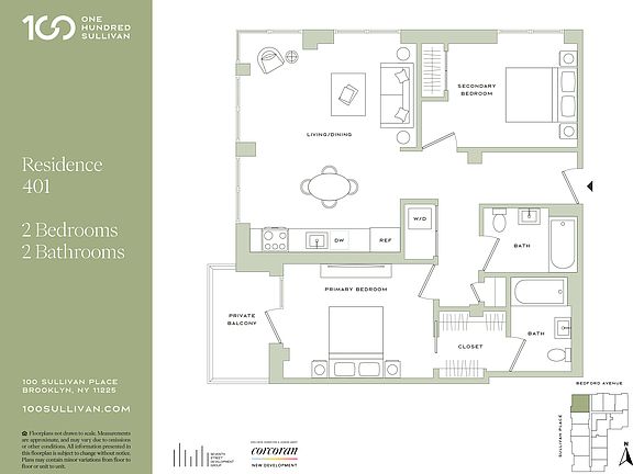 Welcome to 100 Sullivan an exclusive collection of 57 exquisitely designed one- and two-bedroom rental residences, perfectly positioned just two blocks from Prospect Park and moments from Prospect Park at the intersection of Prospect Lefferts Gardens and Crown Heights. With effortless access to the B, Q, S, 2, and 5 trains, this boutique community pairs refined tranquility with vibrant connectivity.