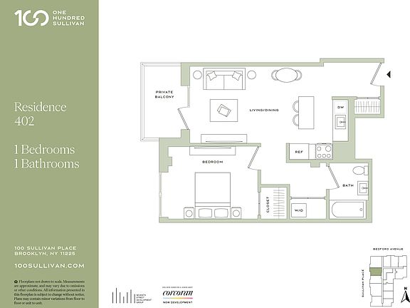 Welcome to 100 Sullivan an exclusive collection of 57 exquisitely designed one- and two-bedroom rental residences, perfectly positioned just two blocks from Prospect Park and moments from Prospect Park at the intersection of Prospect Lefferts Gardens and Crown Heights. With effortless access to the B, Q, S, 2, and 5 trains, this boutique community pairs refined tranquility with vibrant connectivity.