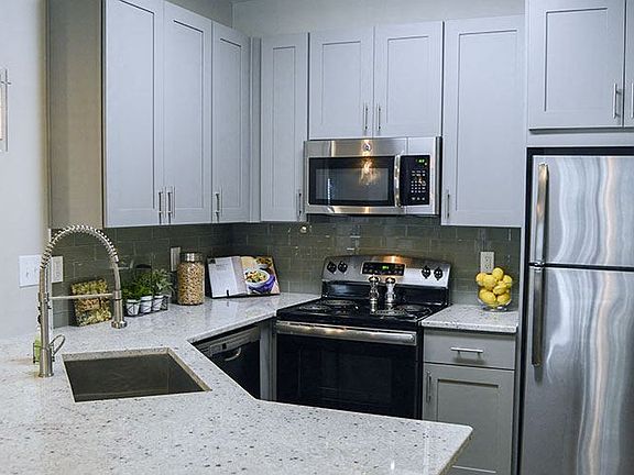 - Exterior features: Barbecue, Breakfast Bar, Built-In Bookshelves, Business Center, Coffee Bar, Double-Sink Vanity, EV Charging, Eco-Friendly, Farmhouse Sink, Granite Countertops, High Ceilings, High-speed Internet Ready, On-Site Maintenance, On-Site Management, Package Receiving, Pet Friendly, Putting Green, Short Term Lease, Soaking Tub, Spin Bikes, Stainless Steel Appliances, Sundeck, Valet Dry Cleaning Service, Valet Waste Service, Yoga Studio