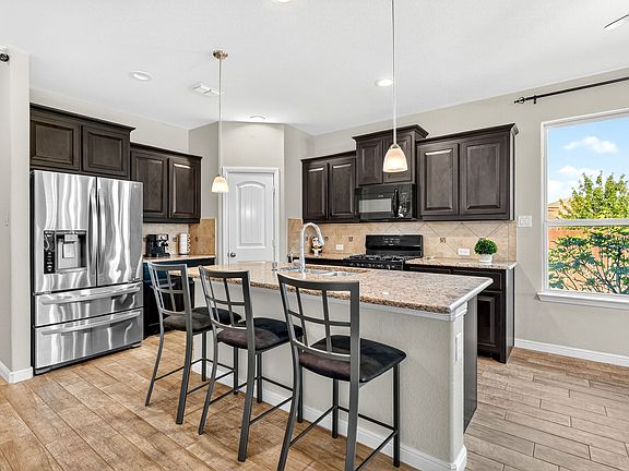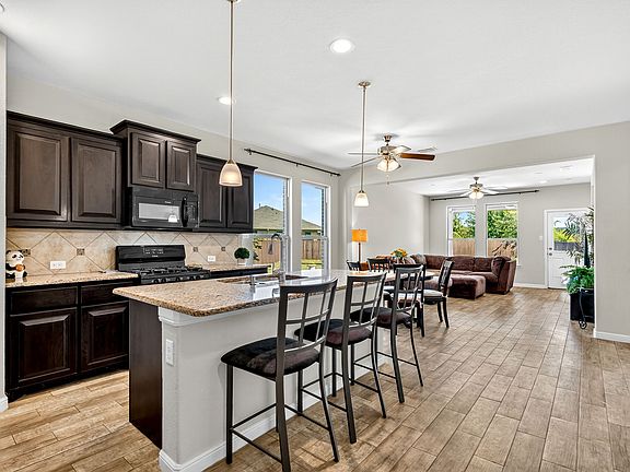 Great condition with wood plank tile throughout, Open Floor Plan and a HUGE backyard. Granite counters in the kitchen and quartz countertops in the bathrooms. Primary features dbl vanity, separate tub and shower and large walkin closet. Covered patio with extended pad, firepit, raised garden bed great view of the HUGE backyard with nothing but pasture behind it. Kitchen has a large island, gas range and the fridge that stays with the property. Front room could be used as 2nd living or office. Other upgrades include the ultraviolet light system in the AC unit and the garage with epoxy floor and insulated door. Don't miss out on this one... And did I mention the HUGE yard
