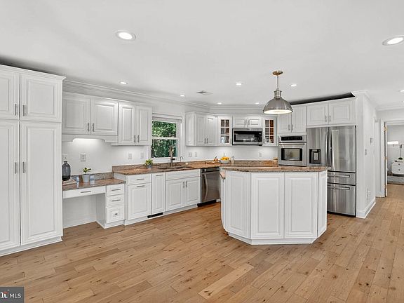 Welcome to your coastal dream home! Perfectly positioned just one block from the community beach and tucked away on a quiet street, this beautifully updated 4-bedroom, 3-bath home offers water views of the South River and a quick stroll to the neighborhood marina and boat ramp. Inside, you'll love the vaulted ceilings, open-concept floor plan, loads of natural light and well-appointed finishes throughout. The stunning primary suite features a spa-like bathroom with a freestanding tub, custom marble shower, dual vanities with marble countertops, and elegant marble tile flooring. Wide-plank white oak hardwoods flow through the main level. The lower-level features a walkout patio, additional living space, and a convenient office space, perfect for working from home. A cozy four-season sunroom with a dual-sided propane fireplace has access to both the front balcony and an expansive back deck that is perfect for entertaining and enjoying the summertime beach life. Set on a flat ½-acre lot with a vinyl privacy fence and a beautifully remodeled exterior featuring fiber cement siding, this home has incredible curb appeal. The spacious two-car garage with built-in storage and a large circular driveway offers plenty of space for cars, guests, and your boat. Updates to this home include a new roof (2023), HVAC (2024), hot water heater (2024), renovated back deck (2025), fresh paint throughout (2025). Conveniently located with easy access to downtown Annapolis, Quiet Waters Park, and Rt. 50 & 97 for a quick drive to Washington DC or BWI Airport, this home has it all!