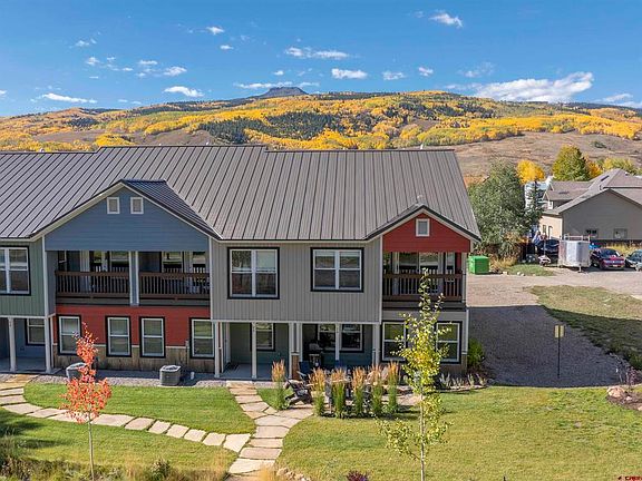 Only recently built in 2022 and then totally remodeled immediately after… it doesn’t get much nicer than this! Welcome to 100 Teocalli Rd. #1, a 3 bed/2 bath townhome located in the desirable Crested Butte South neighborhood. Here you’re just a quick 10 minute drive to the historic town of Crested Butte, and 17 minutes to the world renowned ski resort. Entering the home on the ground level, you’re welcomed by an open, light filled entryway. Down the hall is where you can access the one car garage complete with additional storage closet. On this level you’ll also find laundry, the first bathroom, and two bedrooms, one of which is currently being used as a den/study. A standout feature on this level is the beautiful, reclaimed beams that the sellers have creatively fashioned into door frames. Through the den, you have access to the charming flagstone patio that the sellers added. They’ve outfitted it with a firepit, Adirondack chairs, and some thoughtful landscaping for increased privacy. For larger gatherings, you can make use of the community firepit at the opposite end of the complex. Heading upstairs, you’re greeted by the incredible open living space. The owners have completely transformed the kitchen with custom rift cut oak cabinetry (including a built-in coffee garage!), high end Bosch appliances, and the most stunning slab of natural quartzite for the backsplash. For meals, you have your choice of seating at the bar, or dedicated dining nook with views up to the Caves Trails. The living room is warm and welcoming with the centerpiece being the gorgeous metal fireplace with modern electric insert. For those who like to entertain, you have a custom built dry bar and outdoor balcony, accessed through the living room. Heading into the primary suite, you’ll appreciate the spacious walk-in closet and reconfigured bathroom, featuring a vanity with quartzite top that extends all the way up the wall, honed natural stone floor, and wraparound walk-in shower. The bedroom itself is airy with vaulted ceilings and an abundance of natural light. The private balcony with west facing views of Whetstone is the icing on the cake! Lastly, this home offers central A/C, a rare amenity in a mountain town! CB South is benefiting from a burgeoning commercial district, practically across the street from this property. It currently offers three bars & restaurants, a coffee shop, liquor store, and other service based businesses. You’re also just down the road from the community park, hockey rink, tennis courts and bus stop, making getting to town or the ski resort a breeze. It’s not often that you find a property of this quality at this price. It would make an excellent primary residence, vacation home, or rental property.