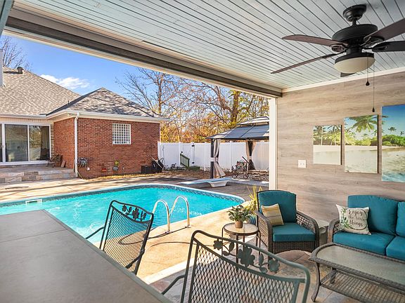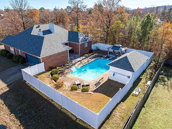 This immaculate one-level home is nestled on a spacious corner lot within Wildwood Forest Subdivision. You'll love having your own private oasis, featuring an inviting in-ground pool with a charming pool-house & cabana/bar; and the fully-fenced backyard ensures complete privacy for relaxation and fun. Inside, the floor plan features 3-bedrooms, 2-bathrooms, and an Arkansas room with tranquil space, offering indoor comfort while soaking up the pool views. The heart of the home, the kitchen, includes a stainless gas cooktop and a cozy hearth room with custom built-in shelving, perfect for entertaining guests or family dinners. Retreat to the spacious master suite, complete with an updated tiled shower, double vanity, and a soaker tub - and the master offers private Arkansas room access as well. Hardwood floors grace the main living areas, and the living room features a second gas fireplace, ideal for cold evenings. Experience the peace of Hidden Forest Subdivision in Lake Hamilton School District, a quiet and pristine neighborhood. What a wonderful place to call "home".