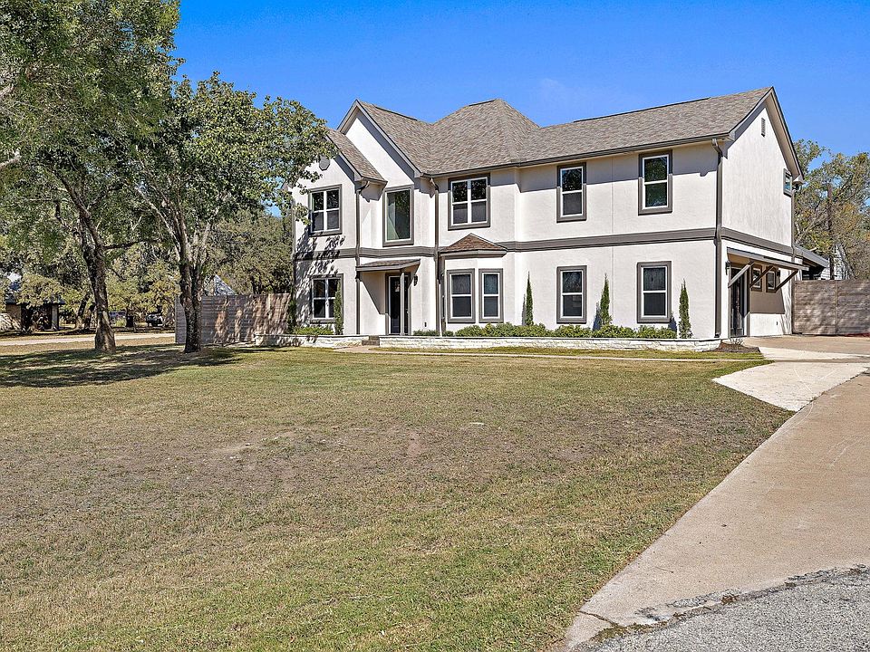Luxurious modern cul-de-sac home on half an acre in the beautiful Blanco River Crossing neighborhood of Kyle. Completely remodeled with centerpiece kitchen – Custom cabinets, Stainless Steel Appliances, Corian Countertops. Fresh Paint throughout, New Flooring, New Windows, Upstairs Utility/Craft Room, Walkthrough Primary Closet with custom cabinetry, All New Appliances, Plumbing Fixtures and Fans, Large rear Patio, Mud Room/Half bath off of Patio, Two Outdoor Storage/Utility Buildings. No HOA. Easy Access to Five Mile Dam Blanco River Park and Soccer Fields, HEB, Sprouts, and more. Assigns to Blanco Vista Elementary, Wallace Middle School, and Hays High School.