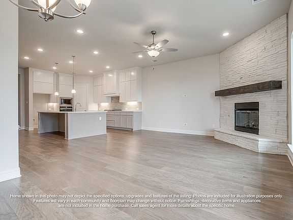 Wood burning fireplaceEngineered wood flooringCovered patioUpgraded tile selectionsAll-brick elevationMarble kitchen countertopsGourmet open kitchen