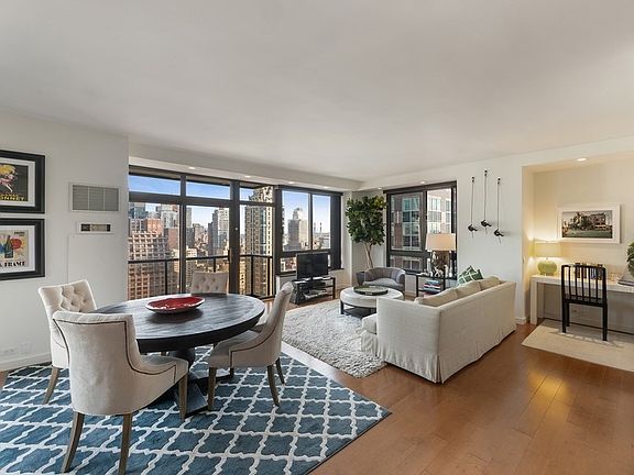 Stepping in to this north-facing apartment measuring approximately 1,242 square feet you will be immediately drawn to the generous open living and dining room showcasing idyllic skyline views from its floor-to-ceiling windows with north, west and east exposures. An ideal space for entertaining with the adjacent pass-through kitchen.