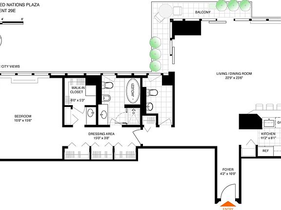 Available for an October 20th lease start date. Largest 1 bedroom, 1.5 bathroom layout high on the 29th floor at 100 United Nations Plaza, one of Midtown East's premier white-glove condominiums.