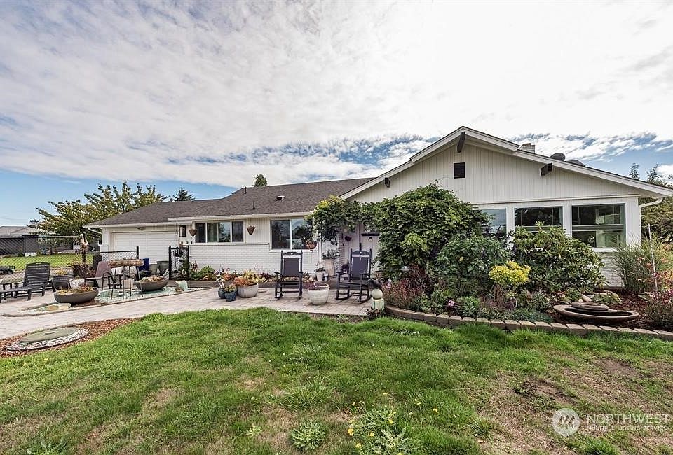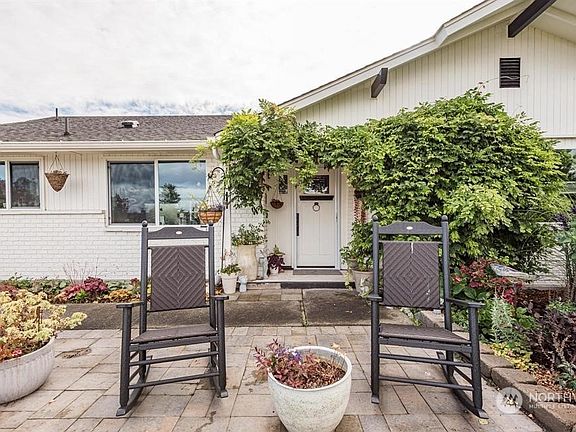 Welcome to this exquisite, thoughtfully designed single-level home that seamlessly combines modern amenities with a touch of rustic charm. Situated on a picturesque property with mountains & water surrounding it, this house offers the perfect blend of comfort and functionality. Upon entering, you'll be immediately drawn to the shiplap walls & ceilings and the remodeled primary bath, which boasts an added wall for privacy, a luxurious shower, and a cozy propane fireplace for those chilly nights. The Bliemeister cabinets and a door leading into the bathroom add both elegance and convenience. The kitchen is a chef's dream, offering loads of storage, including an island, 5 burner cooktop, CAFE wall oven and Brazilian soapstone countertops!