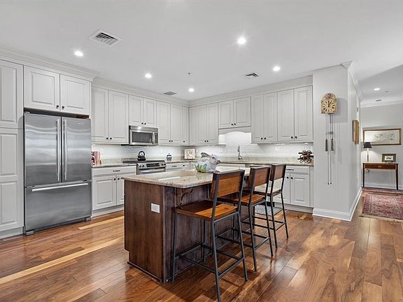 Stunning three bedroom beautifully designed condo. This end unit has expansive living space flooded with natural light and offering lovely marsh views. Kitchen is well equipped with Miele dishwasher, gas stove, microwave, under cabinet lighting, granite counter tops and tiled back splash. In addition great storage space and large island with seating and additional storage. Owner's suite with great windows, walk-in closet. Owner's bathroom offers soaking tub and separate shower. Hardwood flooring. All windows are covered with shutters for a fabulous look throughout. Private porch perfect for enjoying the morning sun. HOA includes gym, wonderful riverfront outdoor space w/gas grills, gas firepits and gardens. Easy access to shopping and highways.