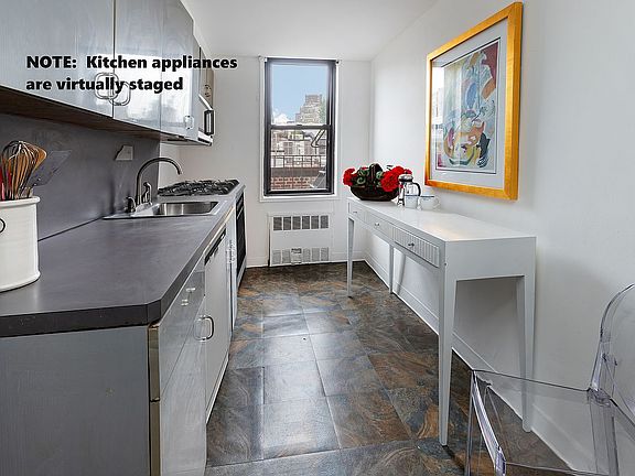 A gracious entry hall leads to the large living/dining space with eastern exposures. The king-sized bedroom features eastern and southern exposures and a large walk-in closet. The galley windowed kitchen is spacious enough to create an outstanding chef’s dream. The windowed bath features reglazed tiles and tub. The apartment features hardwood flooring throughout the living space.