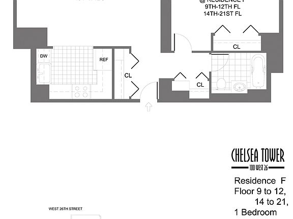 Spacious one-bedroom home, featuring soaring ceilings and a generous living/dining area, this residence offers comfort and style in every detail. The chefs kitchen boasts stainless steel appliances and ample counter space perfect for cooking and entertaining. Thoughtfully designed with three custom closets, this home blends form and function effortlessly. The stunning 34 story Chelsea Tower is as beautiful to look at as it is to look from with its glass wall facade and dramatic floor to ceiling windows. Chelsea Tower features the best Manhattan living has to offer, including a 24-hour concierge-attended marble and limestone lobby, fully equipped fitness center, 2500 sq ft landscaped second floor roof terrace, and residences featuring granite kitchens and marble baths, floor-to-ceiling window walls, custom double hung closets, water filtration system, and spectacular panoramic City and River views.