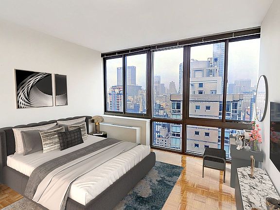 Spacious one-bedroom home, featuring soaring ceilings and a generous living/dining area, this residence offers comfort and style in every detail. The chefs kitchen boasts stainless steel appliances and ample counter space perfect for cooking and entertaining. Thoughtfully designed with three custom closets, this home blends form and function effortlessly. The stunning 34 story Chelsea Tower is as beautiful to look at as it is to look from with its glass wall facade and dramatic floor to ceiling windows. Chelsea Tower features the best Manhattan living has to offer, including a 24-hour concierge-attended marble and limestone lobby, fully equipped fitness center, 2500 sq ft landscaped second floor roof terrace, and residences featuring granite kitchens and marble baths, floor-to-ceiling window walls, custom double hung closets, water filtration system, and spectacular panoramic City and River views.