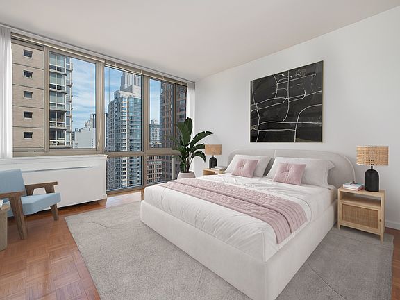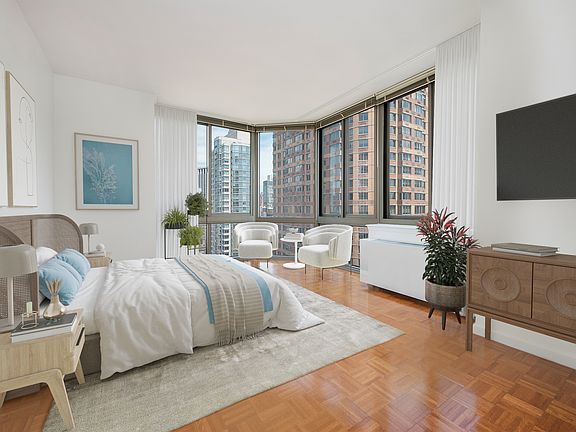 Fully renovated corner unit with triple exposure showcasing the Empire State Building, Freedom Tower, and sweeping river views. This sun-drenched home features: 1,215 sq ft living space, high ceilings and panoramic windows for dramatic natural light, spacious floor plan with a living room and separate dining area, two king-sized bedrooms with custom closets including a walk-in, two modern full bathrooms, gourmet kitchen with granite counters, stainless steel finishes, and oversized appliances, in-unit washer/dryer. The stunning 34 story Chelsea Tower is as beautiful to look at as it is to look from with its glass wall faade and dramatic floor to ceiling windows. Chelsea Tower features the best Manhattan living has to offer, including a 24-hour concierge-attended marble and limestone lobby, fully equipped fitness center, 2500 sq ft landscaped second floor roof terrace, and residences featuring granite kitchens and marble baths, floor-to-ceiling window walls, custom double hung closets, water filtration system, and spectacular panoramic City and River views.