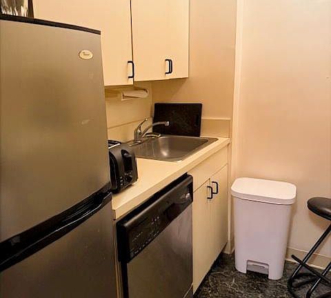 Large, quiet, west facing, furnished studio in the heart of Midtown Manhattan. Full separate kitchen, great storage and lovely, solid wood parquet floors.
