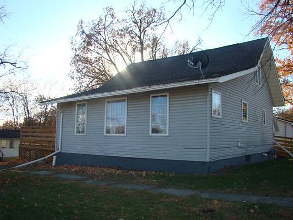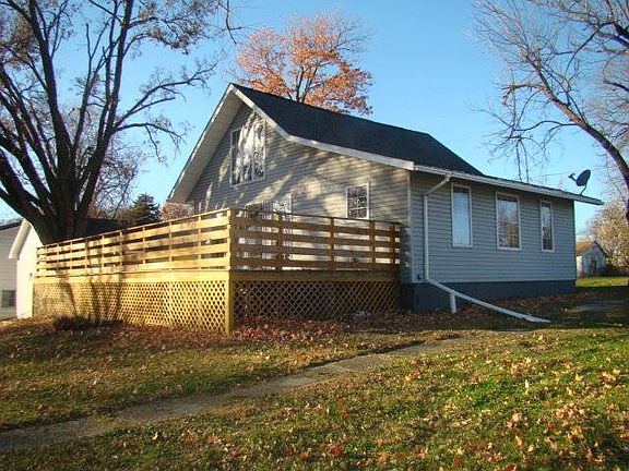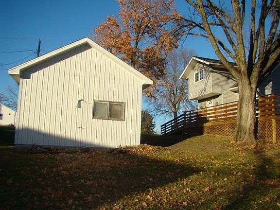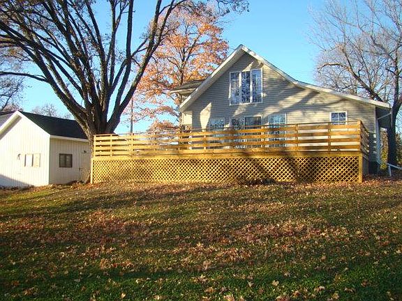 Very cute bungalow on a corner lot in Corydon. This home is very bright and happy with light colored laminate floors, lots of windows and has a 1/2 wrap around deck that is AWESOME ! An open concept layout with a generous sized living room area with the kitchen with island and counter with bar and 3 included stools. Off this open area is an enclosed temperature controlled porch that acts as a laundry room and this will included the washer and dryer.This area is big enough measuring 10x26 to cut in half and add a main level additional bedroom. There is a full bathroom(walk-in shower, no tub) also on the main level. The kitchen has white cabinets and appliances to brighten up the room even more that will include the oven/stove, built in microwave and refrigerator. There is a finished attic and is the main bedroom, it is carpeted and measures approximately 257 sq ft with a BIG walk-in closet. This bedroom could also be turned into more bedrooms other than one huge room if needed. An18x24 detached garage is included and this all sits on a small easy to take care of 80x80 lot that has some pretty, mature shade trees. The electric is on breakers and has a 200amp box, central a/c and forced hot air heat. The gigantic deck and ramp were new in 2024 along with new roof on the garage. This is a cool house and is priced to sell, make those viewing appointments today !