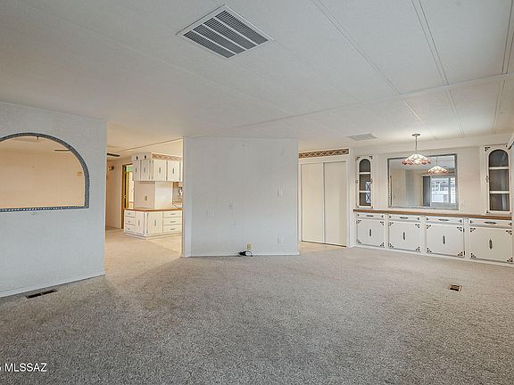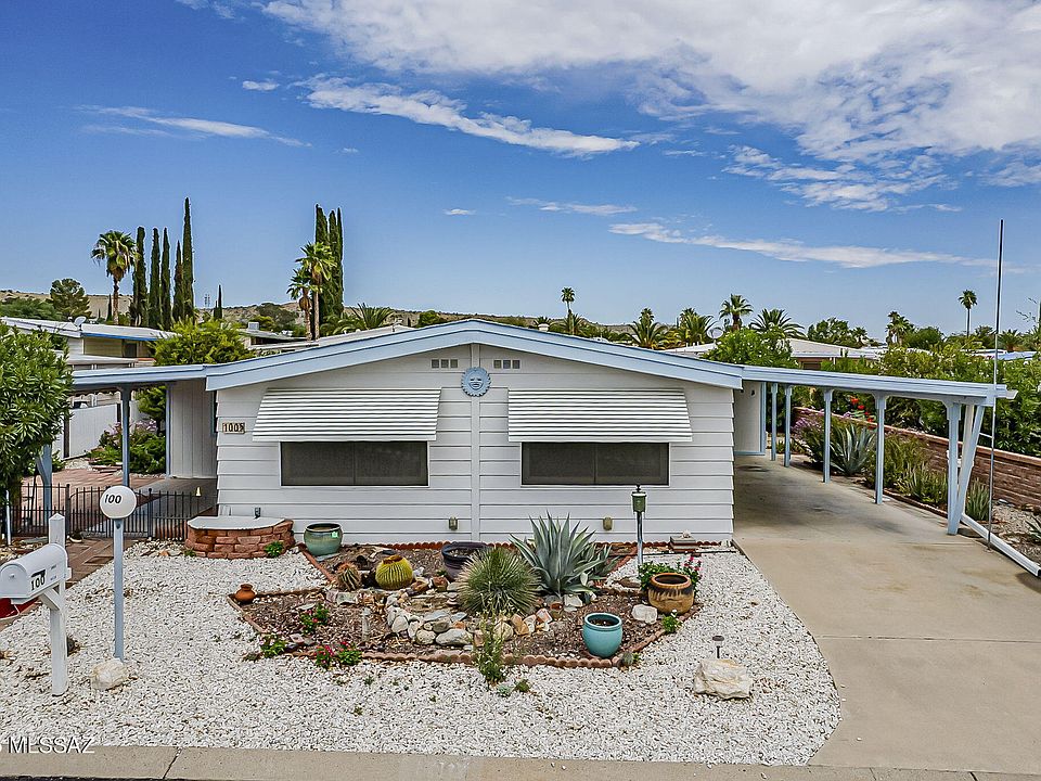 THIS 2 BEDROOM, 2 BATH HOME IS LOCATED IN DESIRABLE PUEBLO ESTATES 55+ COMMUNITY, WHERE YOU OWN THE LOT. LIVING ROOM/ DINING AREA WITH HUTCH. EAT-IN KITCHEN HAS LOTS OF CABINETS AND PANTY FOR STORAGE. DEN OPENS OUT TO ARIZONA ROOM (NOT INCLUDED IN SQ. FT.) WITH SEPARATE COOLING UNIT AND EXTRA CLOSET. BOTH BEDROOM HAVE SLIDING MIRRORED CLOSET DOORS. PRIMARY BATH HAS REMODELED WALK-IN SHOWER. BONUS ROOM WITH WASHER AND DRYER PLUS MORE CABINETS. LARGE WORKSHOP/ STORAGE ROOM OFF 2 CAR CARPORT. COVERED PATIO TO ENJOY RELAXING, VIEWING SUNRISES, SUNSETS, AND MOUNTAIN VIEWS. HOA DUES $65.00 MO. INCLUDES GREAT RECREATION FACILITIES TO EXPLORE MANY ACTIVITIES. HEATED SALTWATER POOL AND HOT TUB, TRASH PICK-UP, COMMON AREA AND STREET MAINTENANCE. NO GVR, BUT AVAILABLE.