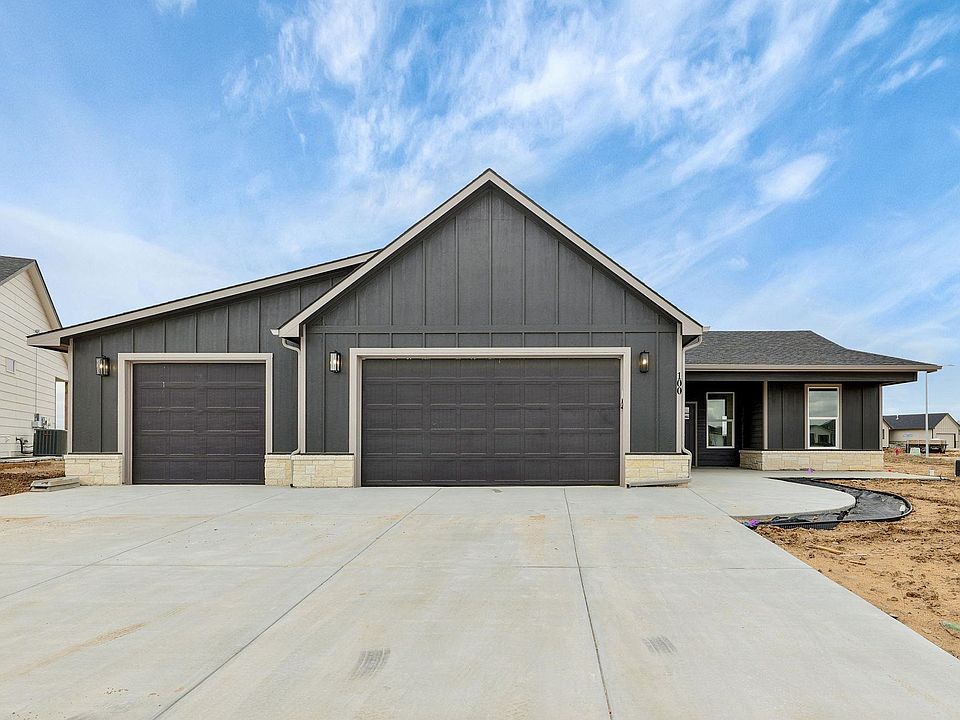 WOW! DON'T MISS THE $5,000.00 BUILDER INCENTIVE THAT YOU CAN USE FOR YOUR CLOSING COST OR BUY DOWN YOUR INTEREST RATE!!! Enjoy your zero step entry, open floorplan, nestled in Goddard's quiet Rustic Creek Neighborhood. This 3 bedroom, 2 bathroom home features large kitchen island with granite countertops, walk-in pantry, gas range, under cabinet lights, electric fireplace, split bedroom floorplan for the ultimate privacy. Enter you home through the garage and find a custom built drop zone for all your coats and shoes. Separate laundry rooms allows you to enter you master closet for ease of putting away the laundry. The tall 9' ceilings and large windows really allow natural light and enhance the openness of the living area. Relax on your covered lanai with your favor beverage overlooking you large corner lot backyard. The sod, sprinkler system with well, complete this move-in ready home. Call today for your private showing and be moved in before the holiday season.