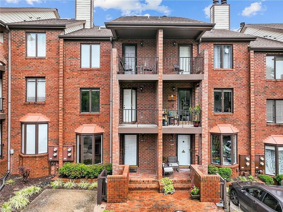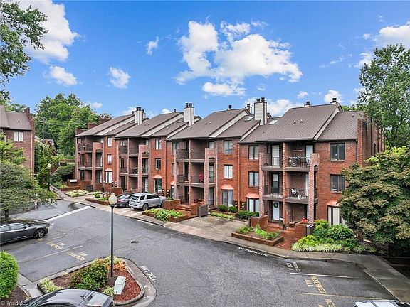 Excellent Wafco Mills condo in College Hill neighborhood. All brick two story condo with one bedroom and bathroom on each level. Cozy living room with gorgeous corner wood burning fireplace, built-ins and a bay window. Well-equipped kitchen with solid surface countertops and stainless appliances. Laundry on the main level. Plenty of storage closets. Upstairs bedroom has access to it's own balcony. Updated flooring and paint throughout. One parking spot right at your front door and another assigned spot in the parking lot. Right next to Greensboro College and a short walk to UNCG, this is a great opportunity to own a part of Greensboro history in Wafco Mills. Explore downtown just a few blocks away or hop on the Greenway!