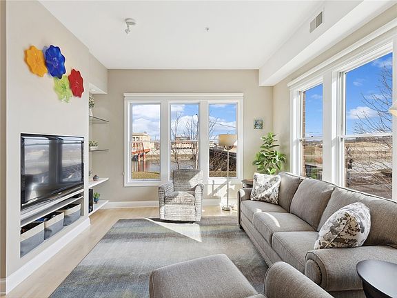 Waterfront living in downtown Des Moines! Completely renovated, high end condo filled with light & remarkable views of the Des Moines River, Red Pedestrian bridge & the golden dome of the Capital. This spacious 2 bedroom, 2 bathroom home has it all! Open concept with an eat-in kitchen & large center island. There is plenty of room for home office space, comfortable living room & dining area. The Primary suite is private & separate from the living areas. It features a large bath with gorgeous soaking tub, new vanity, mirrors & 2 large custom built-in closets. The 2nd bedroom is very generous in size & has access to the updated ¾ bath. 2 car underground parking! 2 balconies! An abundance of storage & closet space. This VERY special home is like new & move in ready!