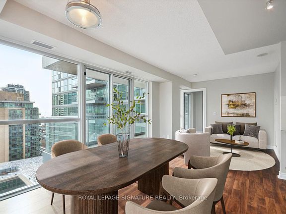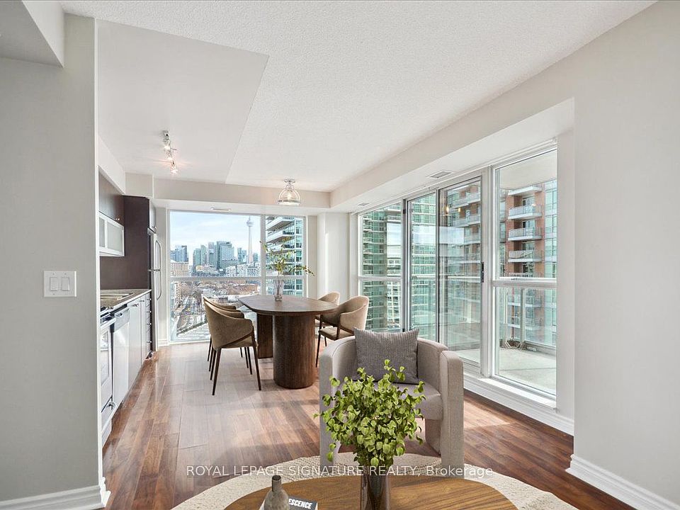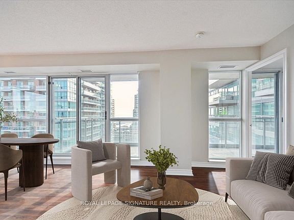 Incredible value for a true 2 bed suite! Prepare to be captivated by breathtaking, postcard-worthy views of both Lake Ontario and the iconic CN Tower from not one, but two expansive balconies, an exceptional feature that sets this corner unit apart. Inside, the thoughtfully designed split two-bedroom layout maximizes space with zero wasted square footage, offering both functionality and style. Each well-appointed bedroom boasts generous closet space and direct balcony access, creating a seamless blend of indoor-outdoor living. This residence also includes the added convenience of a storage locker, all nestled in the vibrant heart of Liberty Village. Floor-to-ceiling windows frame panoramic skyline vistas, flooding the living space with natural light and showcasing Toronto's dynamic cityscape. Smart Layout: The split-bedroom design ensures privacy and comfort, with both bedrooms featuring walk-outs to the balconies perfect for morning coffee or evening relaxation. Impeccable attention to detail is evident throughout, with high-end finishes that enhance the suite's modern aesthetic. Situated in the lively Liberty Village, you'll have premier access to trendy cafes, restaurants, boutiques, and green spaces, with the best of Toronto just steps from your door.This remarkable suite offers the perfect balance of cosmopolitan living and serene retreat. Don't miss the opportunity to call it your own. Enjoy World-Class Building Amenities: Indoor Pool, Fitness Centre, Guest Suites, Visitor Parking, Party Room, Terrace w/ BBQs & Much More. Convenient Pedestrian Bridge To King St West steps from the building.