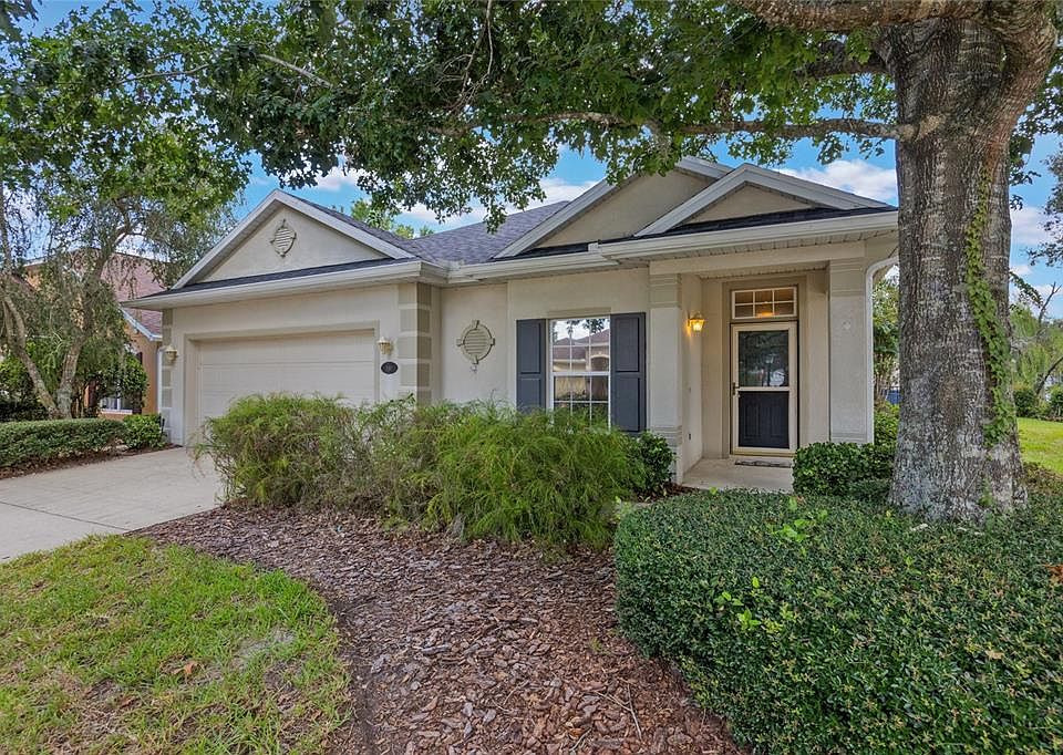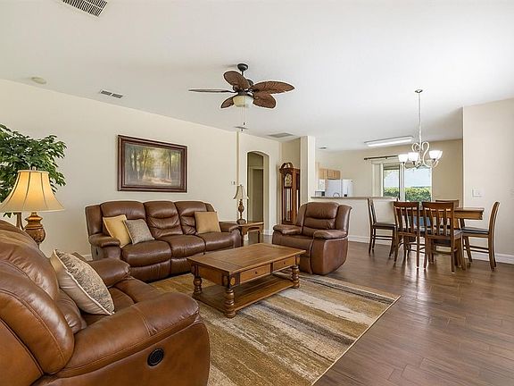 One or more photo(s) has been virtually staged. Discover this beautifully maintained 3-bedroom, 2-bath contemporary home in the prestigious golf community of Victoria Gardens. NEW ROOF in 2021, AC in 2023. The desirable split floor plan offers privacy, spacious walk-in closets, abundant storage, and the comfort of gas appliances. New carpet was just installed in the bedrooms and attractive wood-look ceramic tile provides a consistant view from the front door to the kitchen. The home faces northeast and you'll enjoy sunset views on the screened lanai in the evening. Located on a corner lot within the highly sought-after 55+ guard-gated community of Victoria Gardens, this home offers a truly maintenance-free lifestyle. Lawn care, cable, and internet are all included, giving you more time to enjoy the community’s world-class amenities: a championship golf course, resort-style pool, state-of-the-art fitness center, tennis courts, on-site restaurants, library, computer room, and more. Picturesque, gas-lit streets create a warm, inviting atmosphere for evening strolls. Convenience is at your doorstep with nearby medical facilities, shops, and restaurants in the charming commons area. Here, every detail is designed for comfort, connection, and ease.