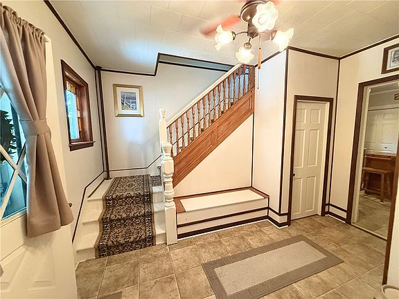 This lovely and well-cared-for home has been cherished by the same owner for 46 years, a true testament to its comfort and charm. The open front porch feels like an extension of the home, spacious enough to sit back and relax, and sets a welcoming tone before stepping inside. A gracious foyer greets you upon entry with closet space and a beautiful staircase accented by a stained-glass window that highlights the character of this 1880 residence. The formal living room is filled with natural light and wood floors, seamlessly flowing into the formal dining room, also with wood floors, a built-in China cabinet, and a decorative faux mantle. The bright eat-in kitchen comes fully applianced, first floor laundry and an enclosed back entrance leading to the driveway and offering additional storage. Upstairs, a generous landing opens to three carpeted bedrooms, each with a closet, along with a full bath featuring a nicely sized tub. A full walk-up attic provides even more possibilities, while the basement houses the heating system and plenty of storage space. Recent updates add peace of mind, including a roof just three years old, a boiler eight years old, and gutters with gutter guards installed only two years ago. The home is vinyl sided with a paved driveway, making it easy to maintain and ready to welcome its next owner.