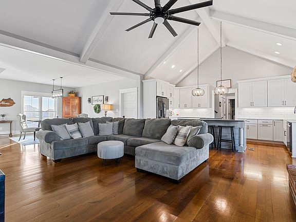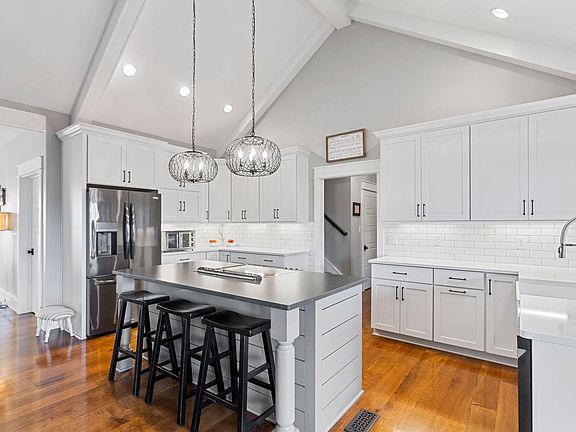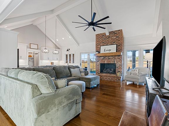 This nearly 2,400 sqft, immaculate 4-bedroom ranch with an unfinished basements sits on 1.75 acres in the highly-desired neighborhood of Winding Oaks. You'll be impressed by everything this home has to offer, beginning with the open floor plan and stunning natural light. Gorgeous hardwood flooring runs throughout the main living areas of the home and ushers you into the big dining area, perfect for entertaining. The great room is large with a vaulted, exposed beam ceiling and a floor-to-ceiling brick fireplace. The perfect kitchen is waiting for you: quartz and soapstone countertops, a farmhouse sink, stainless steel appliances, a breakfast bar, and ample counter and cabinet space. Check out the spacious owner's suite, complete with a huge walk-in closet and a private, ensuite bathroom with a large tiled shower. Three additional bedrooms are nicely-sized. There's no shortage of storage in this home, which includes a nearly-finished walkup attic. The unfinished basement is a blank canvas to suit your needs--enjoy all the extra space or finish it off for even more room to live, work, and play. Enjoy peace and privacy from the covered back patio while taking in the view!