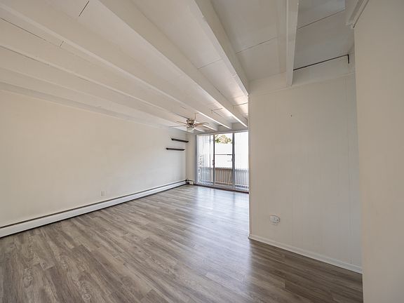 Inside, you'll find modern laminate wood floors, a charming kitchen with newer appliances, and a refreshing bathroom with a custom granite vanity. The bedroom includes a large walk-in closet with built-in organizers, with custom blinds and exposed beam ceilings which gives the space a bright, contemporary feel.